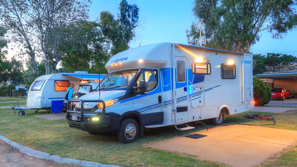 Spacious powered sites up on the grass for Caravans, Camper Trailers and Tents, great views, many sites most sites have access to water. Great area for groups and families.