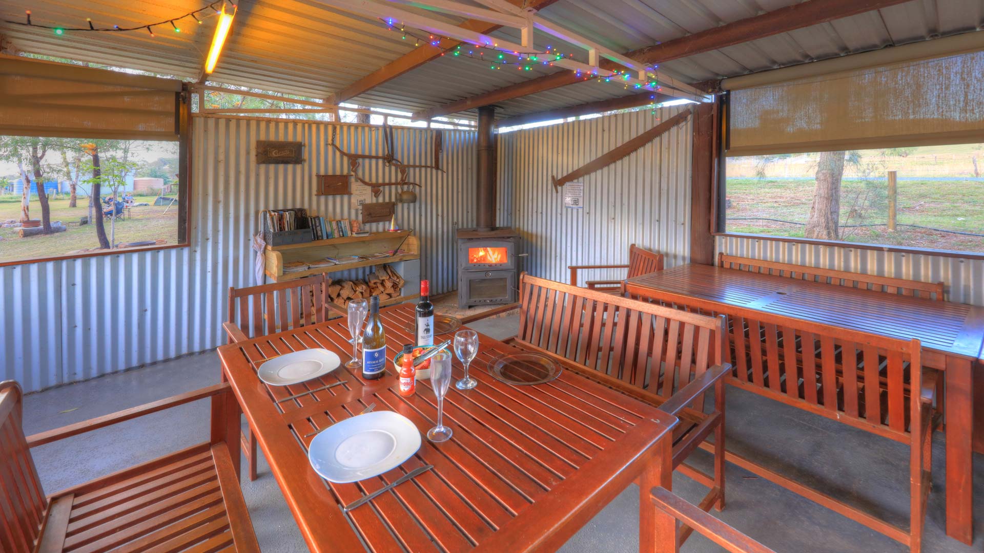 Camp Kitchen available including BBQ’s and pizza oven. The pot belly stove for those cooler winter nights. Kick back and put your feet up.